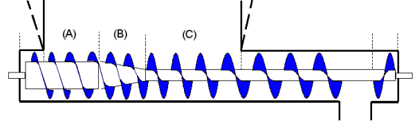 Willen deze voordelen echter gelden, dan is een goed ontwerp van de schroef noodzakelijk. Werkingsprincipe schroeftransportHet transport door een schroef (of vijzel) komt tot stand door de wrijving van het product met de
