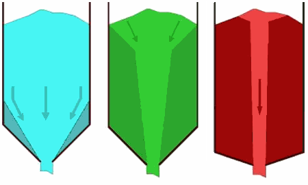 Hierbij wordt het bovendeel ontworpen voor kernstroming en het onderste gedeelte als massastroomtrechter zie figuur.