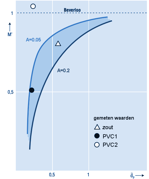 Deze situatie is vergelijkbaar met stroming in een silo, zodat de gevonden waarden te relateren zijn aan een bepaalde plek (drukniveau) in de silo.