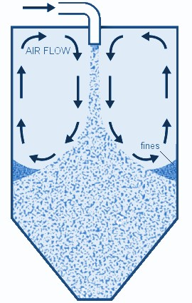 In a silo there are basically two types of flow pattern: core flow and mass flow.