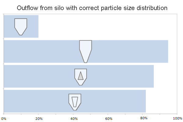 too much cohesion (sticking behaviour) or vibrations and shaking of the silo.