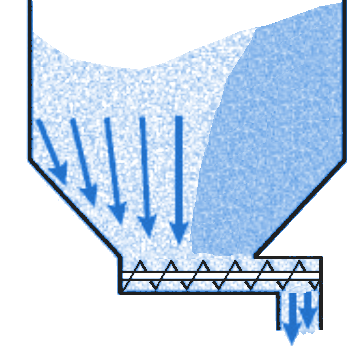 However, it regularly occurs in practice that a feeder installed below the discharge opening disrupts this ideal pattern. This is the case, for example, when a poorly designed discharge screw, vibrating feeder or discharge conveyor extracts the bulk material only over part of the discharge opening.